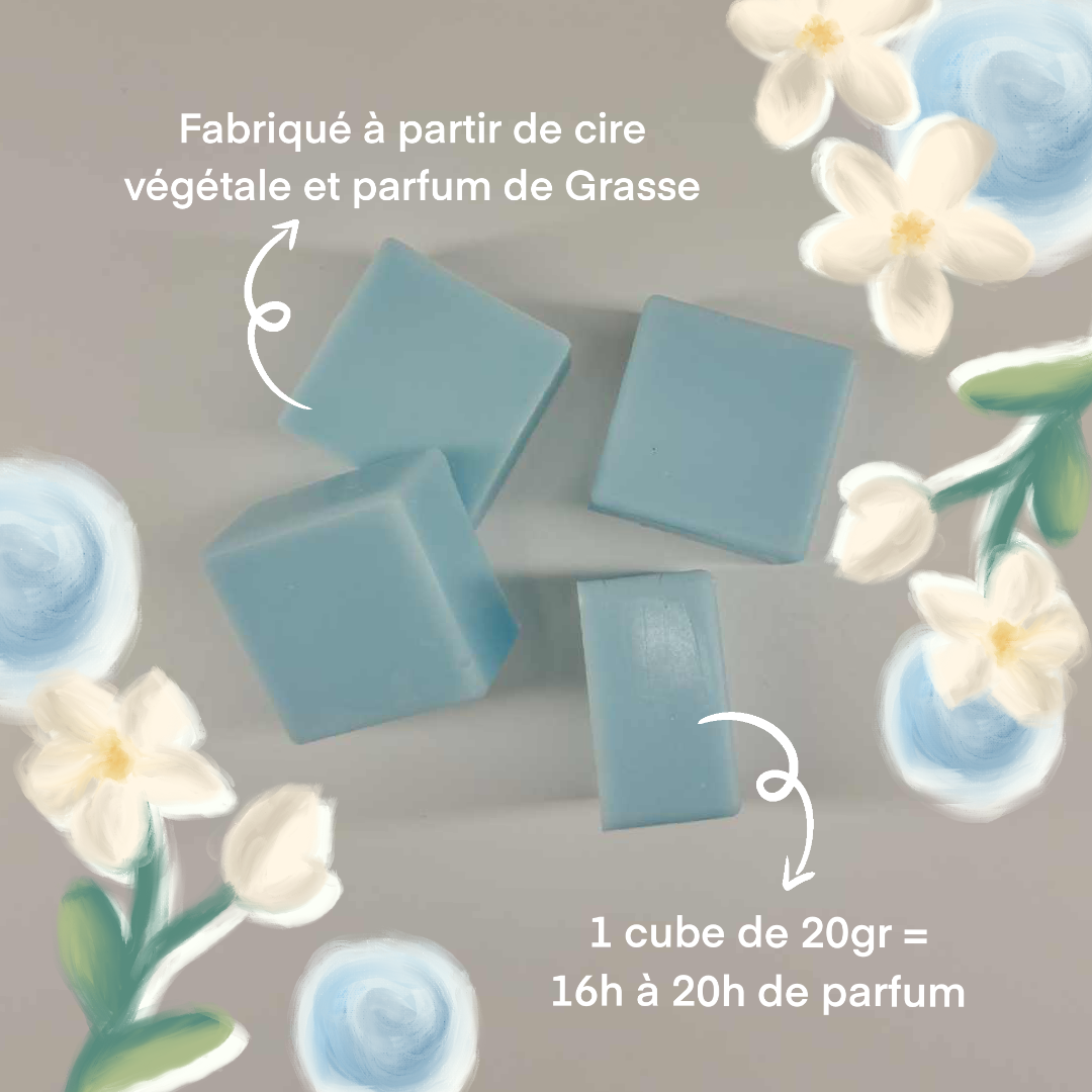 Chaque boîte contient 4 fondants de 20 g, offrant chacun 16 à 20 heures de diffusion, soit plus de 60 heures de parfum au total.