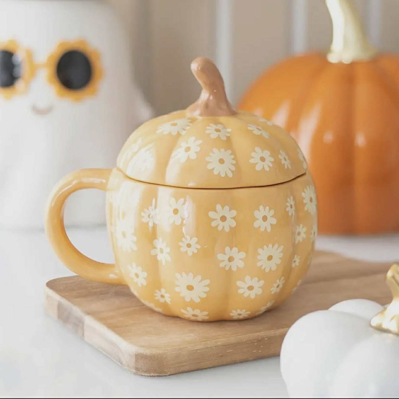 Sunny Cup – Mug Citrouille Fleurie avec Couvercle