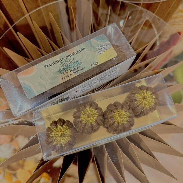 Fabriqués à la main avec soin, nos fondants sont composés de cire végétale naturelle et de parfums de Grasse (dosés à 10%), gage de qualité et d’intensité. Ils libèrent un parfum riche et enveloppant, sans flamme ni fumée, pour une atmosphère chaleureuse et raffinée.