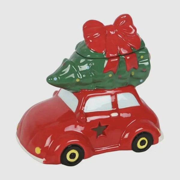 Apportez la magie des fêtes chez vous avec le brûleur “La Voiture du Père Noël”. En céramique brillante, il représente une petite voiture rouge transportant un sapin décoré, noué d’un grand nœud cadeau.