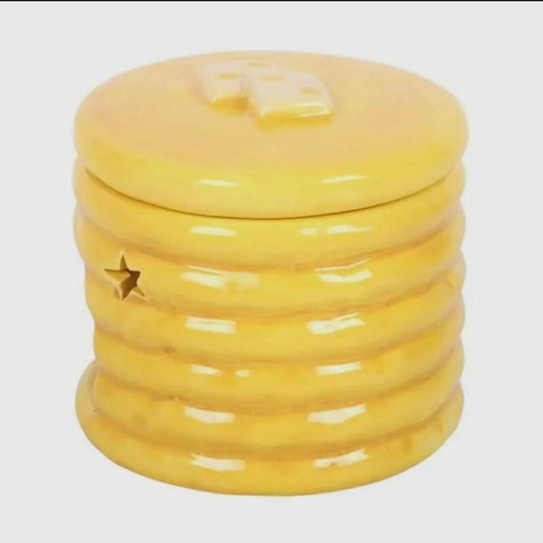 Ultra gourmand, le brûleur “Pancake Party” ressemble à une pile de pancakes nappés de sirop et décorés de beurre. Une fois la bougie allumée, la lumière se diffuse par les petites étoiles, créant une ambiance cosy et originale.