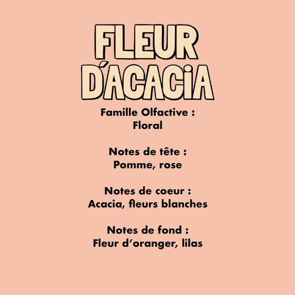 Une floraison douce et lumineuse… Les premières notes de pomme et de rose s’ouvrent avec une fraîcheur tendre, comme un jardin printanier encore perlé de rosée. Au cœur, l’acacia et les fleurs blanches dévoilent un bouquet délicat et rayonnant, à la fois pur, légèrement miellé et profondément apaisant. En fond, la fleur d’oranger et le lilas déposent une touche veloutée, douce et subtilement ensoleillée, laissant dans l’air une sensation de sérénité florale, charmante et enveloppante.