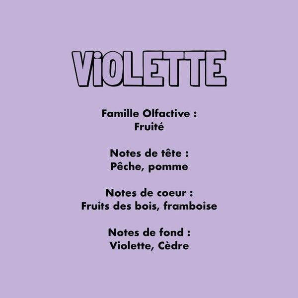 Une douceur fruitée aux accents floraux… Les premières notes de pêche et de pomme s’ouvrent avec une fraîcheur juteuse, lumineuse et délicatement sucrée. Au cœur, les fruits des bois et la framboise apportent une gourmandise vive et pétillante, rappelant une cueillette estivale encore tiède de soleil. En fond, la violette et le cèdre déposent un voile tendre, poudré et légèrement boisé, offrant à cette fragrance un sillage délicat, romantique et subtilement envoûtant.