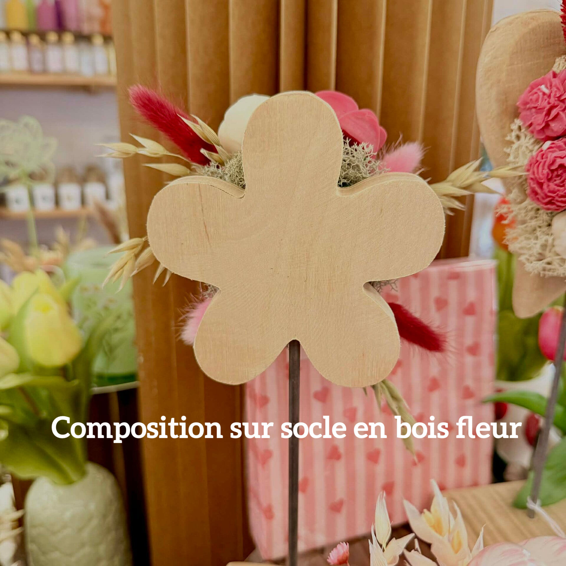 Une fois vos fleurs parfumées terminées, vous les utiliserez pour créer une composition parfumée, sublimée par l’ajout de fleurs séchées et d’éléments décoratifs inspirés de l’univers printanier. Cette création apportera une touche naturelle, douce et parfumée à votre intérieur.